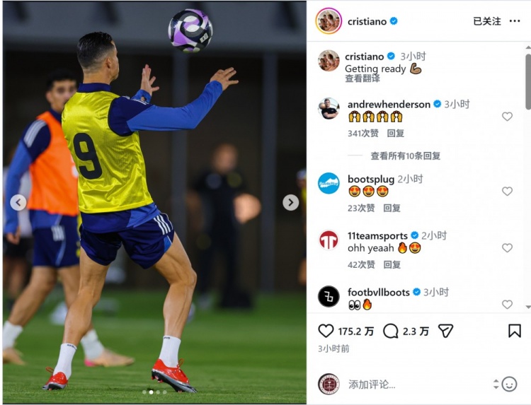 根据此前媒体的报道,C罗有望在此役复出。C罗社媒晒出在利雅得胜利训练的照片,配文:“准备就绪。”