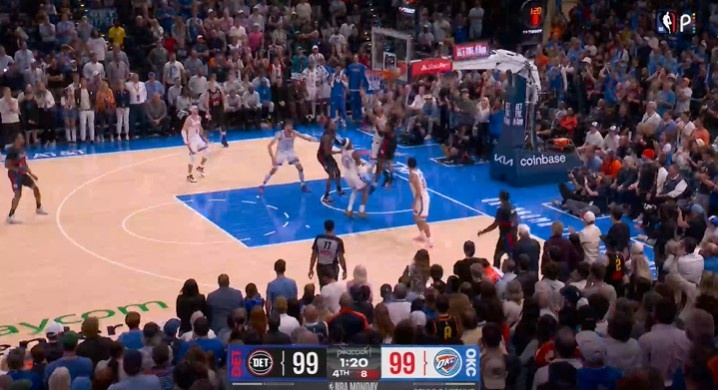 4月1日讯 昨日NBA常规赛,雷霆加时114-110险胜残阵活塞,NBA官方出具了本场比赛第四节和加时赛最后两分钟的裁判报告,共出现1次漏判,对活塞不利。